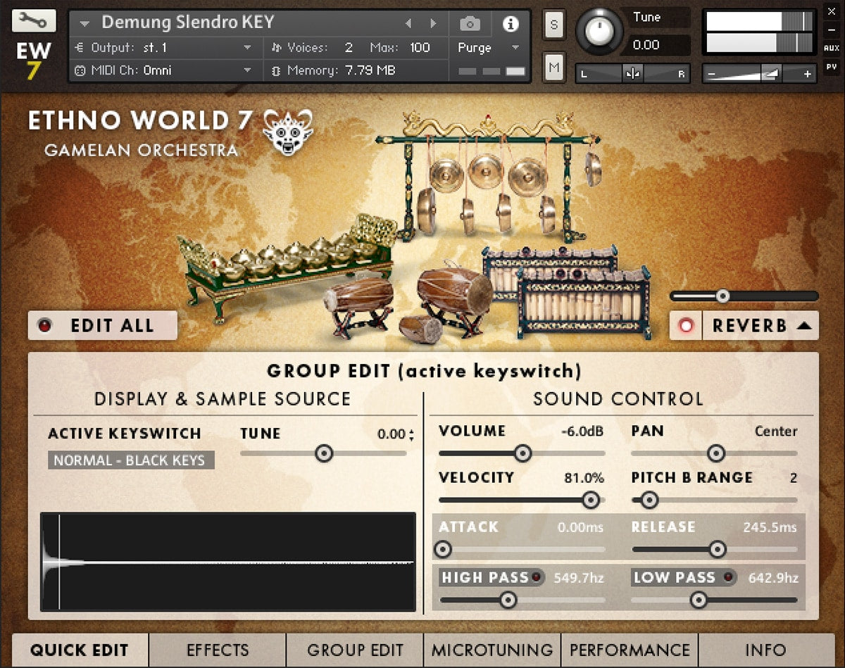 Ethno World 7 also offers a versatile collection of Gamelan instruments from Bali and Java, bringing traditional Indonesian sounds into modern productions.