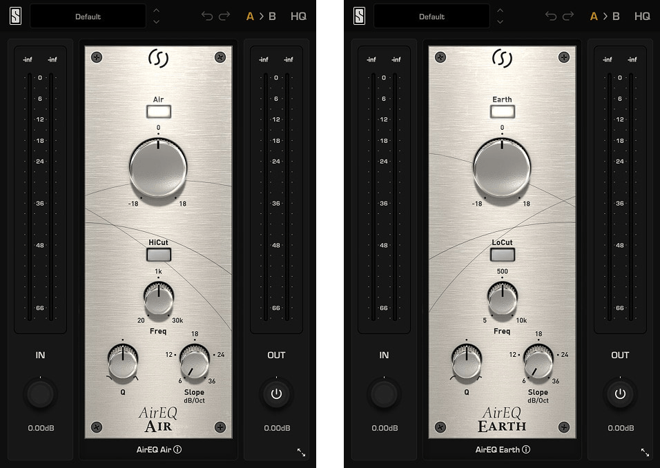 In addition to the actual Air and Earth filters themselves, both modules feature resonant filters (HiCut for the Air and LoCut for the Earth), with slopes from 6dB to 36dB/oct.