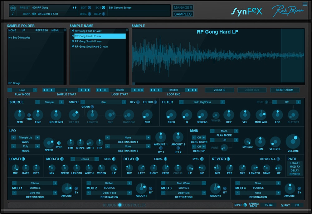 SynFeX not only delivers classic synthesizer noise FX sounds, but it also has built-in samples, and also allows you to load in your own samples!
