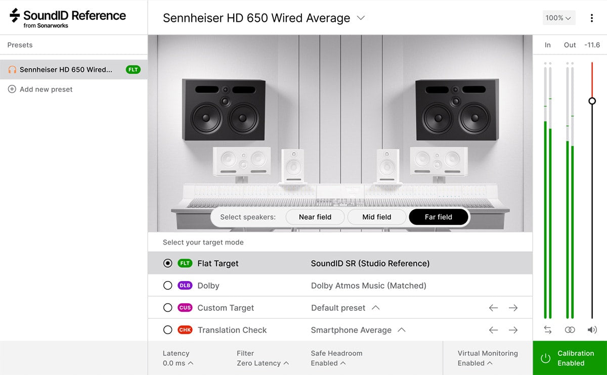 Hear realistic simulations of high quality near, mid and far field speakers calibrated to the reliable flat reference sound.