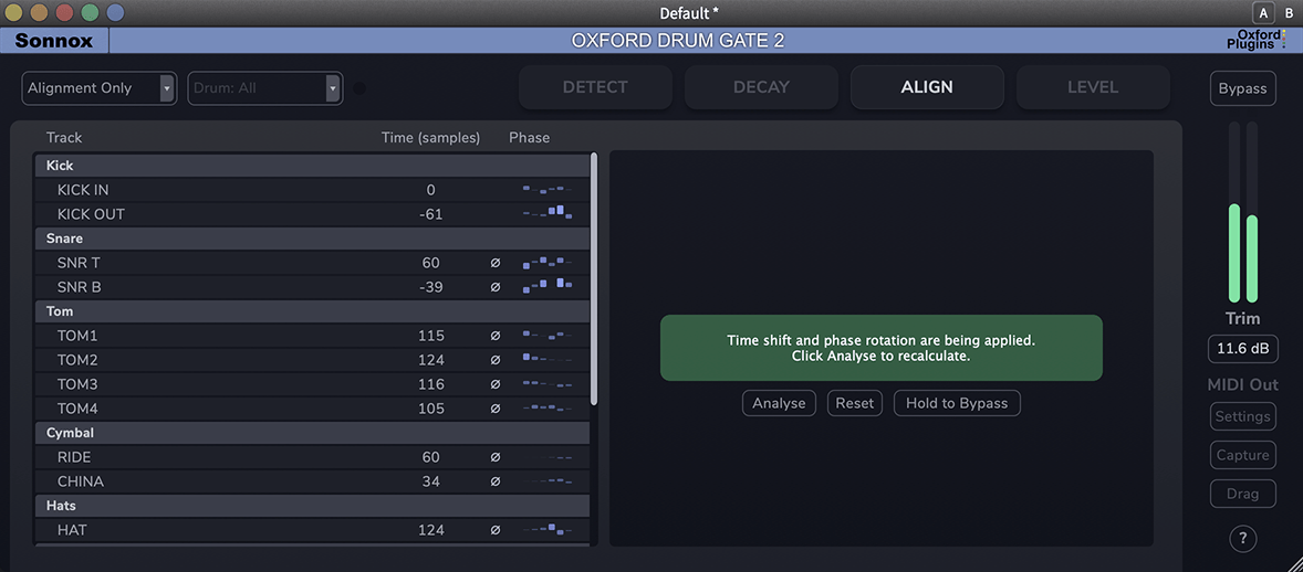 - Align time, polarity, and phase across any set of drum tracks to give a clean, punchy starting point for downstream mixing decisions.
