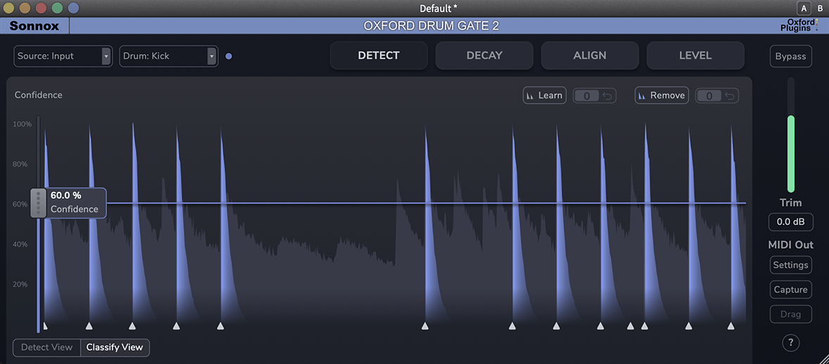 Drum Gate 2 can be triggered via an external sidechain, following MIDI, trigger plugins, DAW markers or manual edits.