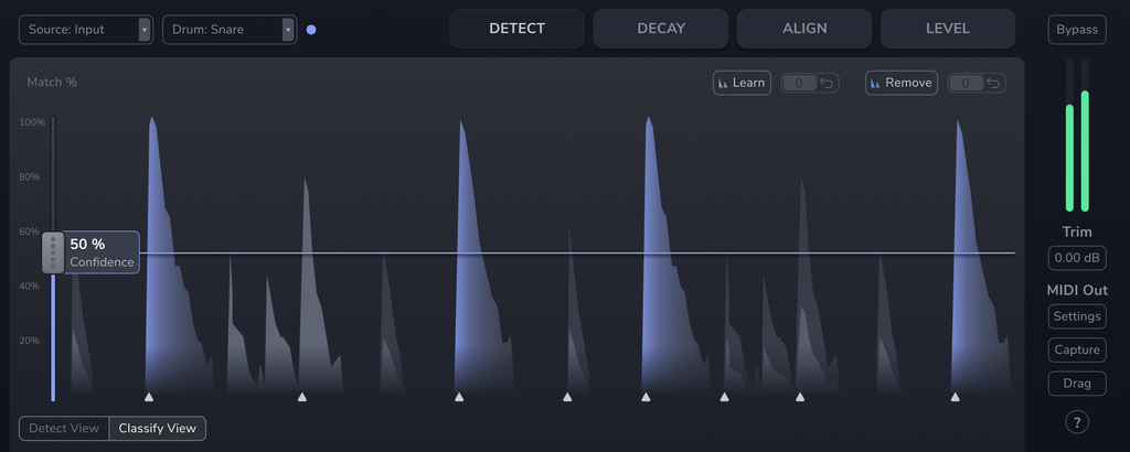 Choose which drums to process and let the detection engine do the work.