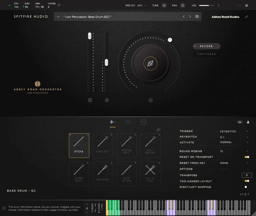 Distinguished by its extremely responsive and highly tactile nature, Low Percussion explores the timbral and textural range of 20 drums from across the orchestral repertoire and further, with up to seven beater options per drum, performing hits, rolls, swirls and sweeps sampled in incredible detail.