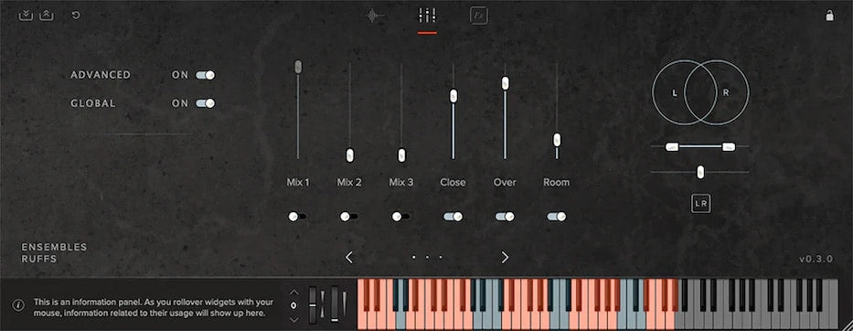 The default Ensembles patch gives you quick access to the entire collection of instruments, conveniently spread across the keyboard, perfect for trying out the sounds and for adding flourishes to the performance loops.