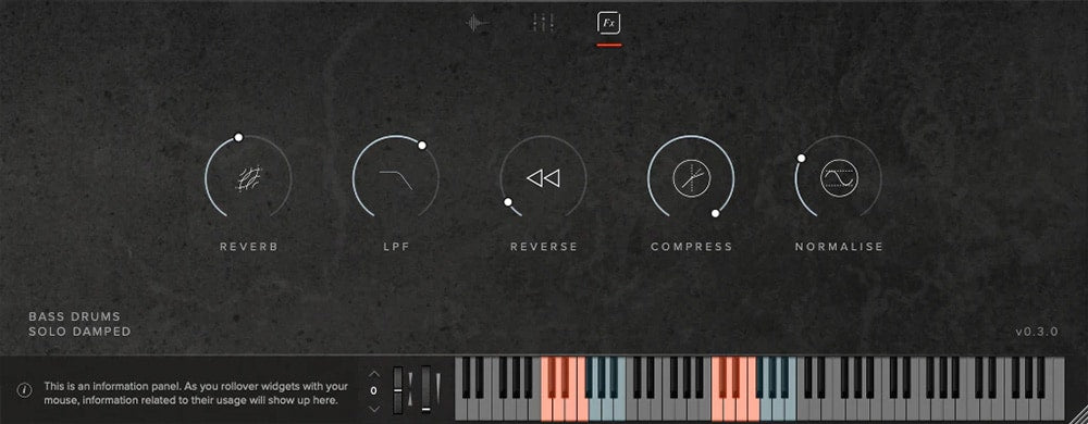 This then repeats up the keyboard giving you the option to move MIDI performances between drums by simply dragging the MIDI information up or down the keyboard or to other instances of Hammers.