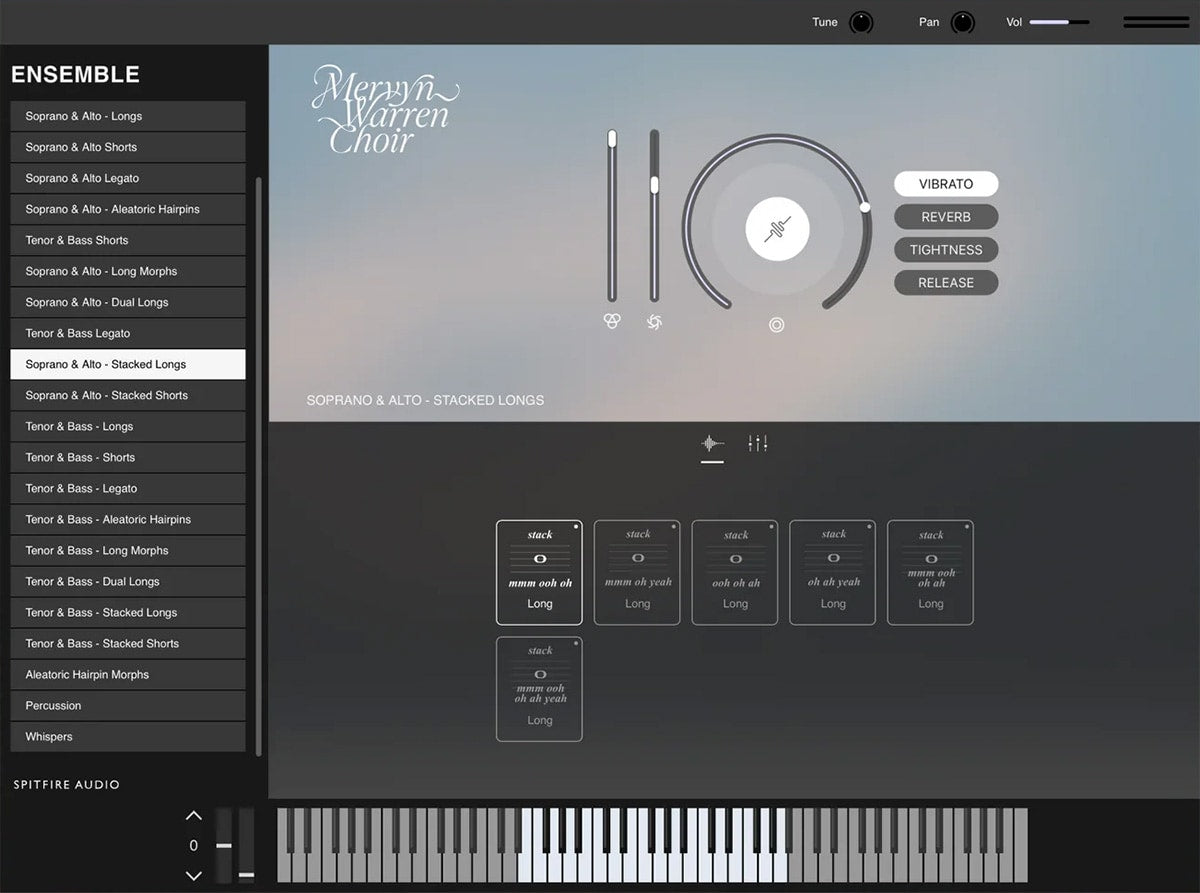 - Vowels, Yeahs, and Mmms - Includes a wide range of vocal sounds, with presets for techniques such as Longs, Yeahs, Oh Long, Ooh Short Staccato, and Mmm Long.