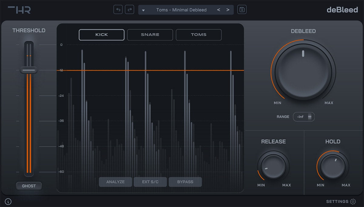 With its built-in audio analyzer, deBleed can set the "threshold" and "debleed" values automatically for you, making the process even faster!